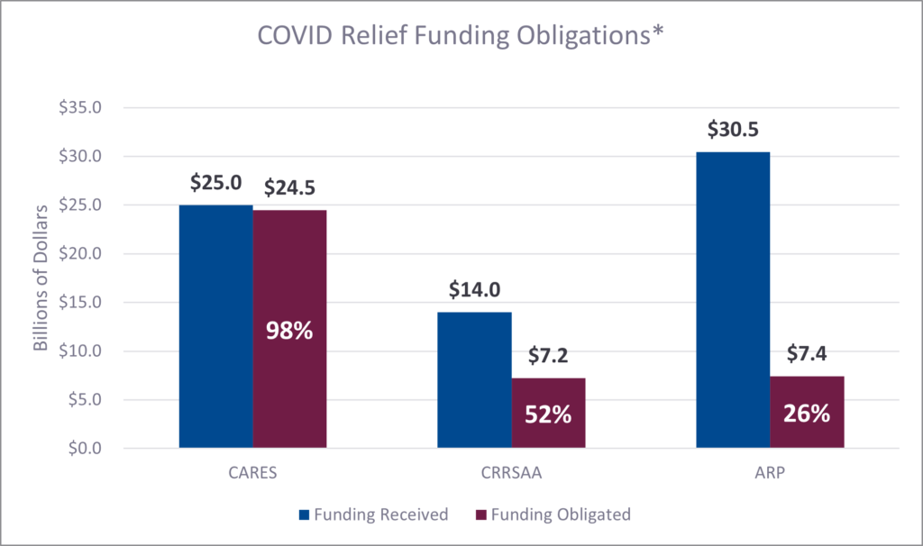 Transit has always been an essential service, providing mobility options for Americans, supporting economic growth, improving the environment, making our roads safer for drivers and pedestrians, and serving critical roles during natural disasters and other emergencies. When the COVID-19 pandemic disrupted the lives of every American, transit served as an essential lifeline. Public transportation systems brought healthcare professionals to the frontlines, delivered groceries and medicine to at-risk populations, and connected essential workers to their places of work. Some agencies even provided exceptional services such as delivering COVID-19 tests or retrofitting buses into Wi-Fi hotspots to help students who would otherwise have difficulty accessing remote learning. Given official declarations to close businesses and impose stay-at-home orders, as well as other measures such as a dramatic increase in remote work, public transit agencies across the nation faced severe ridership declines and state and local revenue losses. Public transportation continued to serve our communities despite significantly increased operating costs and dramatically reduced sources of funding, including fares and other revenues. In most places, fare collection was suspended for safety reasons. State and local transit funding was diverted to address other COVID-related needs. Most significantly, transit workers served as heroes on the front lines. The public transit industry directly employs 450,000 workers, and I would be remiss if I did not mention the significant toll that the COVID-19 pandemic has had on transit agencies’ frontline employees—545 transit workers have been lost to COVID. We thank Congress for recognizing transit’s essential role by passing emergency legislation to provide significant support for transit operating costs that was essential for the very survival of many agencies. The Coronavirus Aid, Relief, and Economic Security Act (CARES Act), the Coronavirus Response and Relief Supplemental Appropriations Act (CRRSAA), and the American Rescue Plan Act (ARP) each provided critical support for public transportation. COVID relief funds helped stabilize agency budgets, which allowed them to continue their capital and construction programs, maintain jobs, and help the economy recover. According to a recent APTA survey, almost one-half of public transit agencies (44 percent) stated that COVID-19 emergency funding helped them avoid a complete shutdown of service. In addition, the overwhelming majority of agencies said that COVID-19 funding helped them avoid layoffs (77 percent) and furloughs (79 percent).2 In addition, COVID-19 relief funding has enabled public transit agencies to ramp up service as people start traveling more and return to offices. Today, two-thirds of public transit agencies (65 percent) are operating at 75 percent or more of their pre-pandemic service levels.3 Emergency federal funding was vital to keeping public transportation systems operating, but this does not mean those dollars were used to simply maintain pre-pandemic functions. Transit agencies pivoted to address urgent needs during the pandemic, such as:- Redesigning routes and revising schedules to better serve riders who most heavily rely on transit;