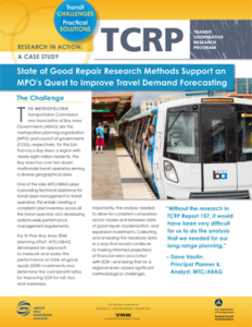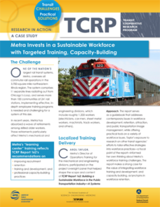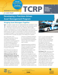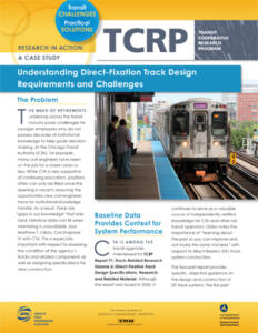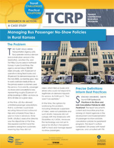 The Transit Cooperative Research Program (TCRP) develops near-term, practical solutions to problems facing public transportation. TCRP is sponsored by the Federal Transit Administration (FTA) and carried out by the Transportation Research Board (TRB) of the National Academies of Sciences, Engineering, and Medicine (NASEM), in partnership with the American Public Transportation Association (APTA).